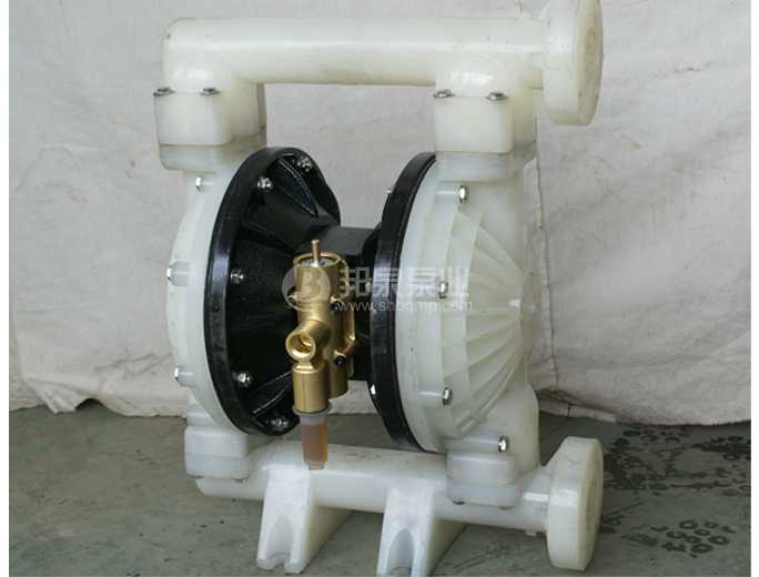 氣動隔膜泵采用壓縮空氣為動力源,可輸送各種腐蝕性液體,帶顆粒的液體,高粘度、易揮發、易燃、劇毒的液體。共有八種規格直徑:¢10mm(3/8寸)、¢15mm(1/2寸)、¢25mm(1寸)、¢40mm( 1寸半)、¢50mm(2寸)、¢65mm(2寸半)、¢80mm(3寸)、¢100mm(4寸)。常有六種材質:鋁合金、鑄鐵、不銹鋼、工程塑料、襯膠、襯氟塑料。隔膜泵根據不同液體介質分別采用丁晴橡膠、氯丁橡膠、氟橡膠、聚四氟乙烯隔膜片等,以滿足不同用戶的需要。石油、化工、電子、陶瓷、紡織、油漆、制藥機械系統單位采用,安置在種特殊場合,用來抽送各種常規泵不能抽吸的介質,有QBY1和QBY2兩個系列。